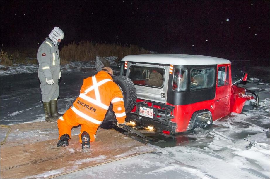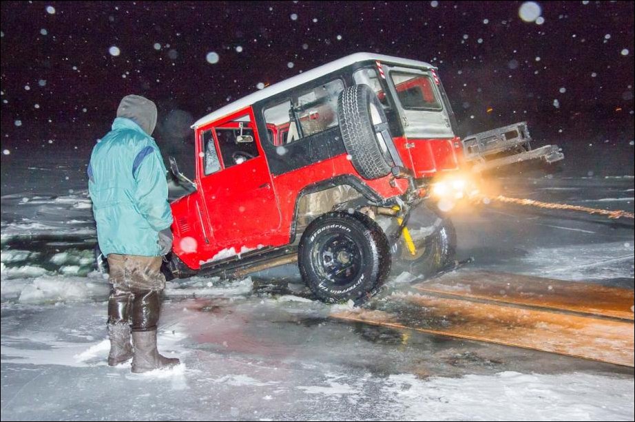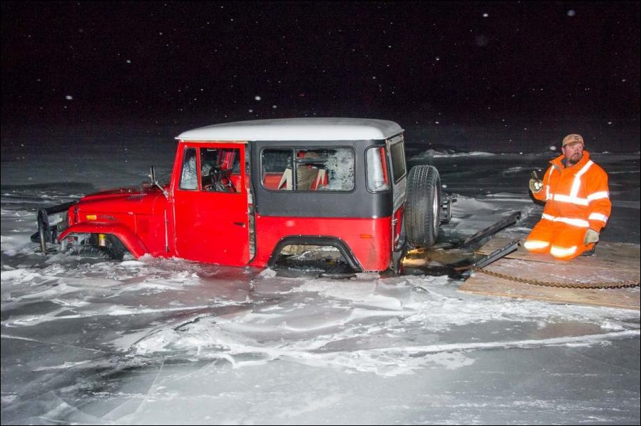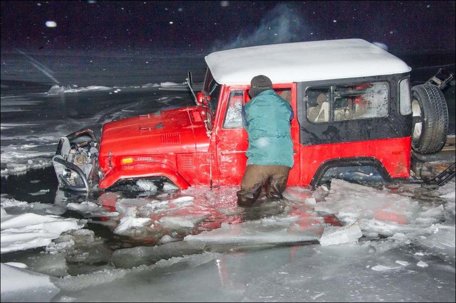 Я вот ума не приложу,что заставило водителя ехать через замерзший пруд